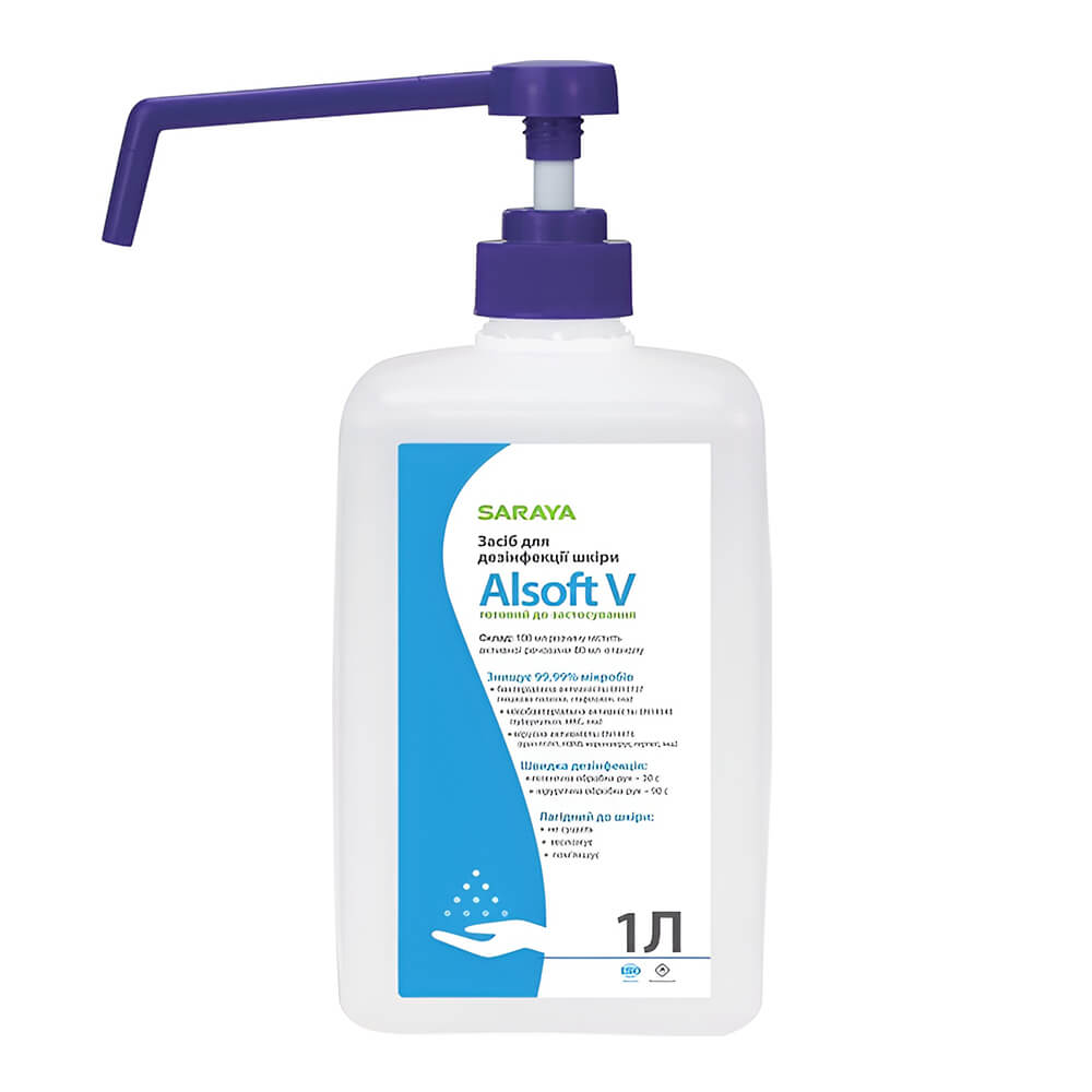 Alsoft V – антисептичний засіб для рук на основі етилового спирту, що знищує 99,9% бактерій, вірусів та грибків. Швидко висихає без липкості, містить зволожуючі компоненти та підходить для гігієнічної та хірургічної обробки.