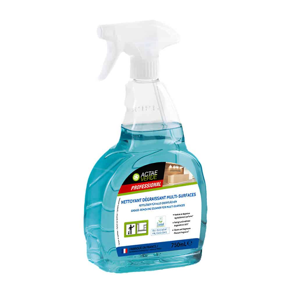 ACTAE VERDE PROFESIONNAL – професійний засіб для знежирення всіх типів поверхонь. Ефективно очищає без пошкоджень та слідів, підходить для щоденного використання на кухні, меблів, пластиці та металі.